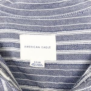 American Eagle Blue Pinstripe Button Down Tie Front Blouse Sz S