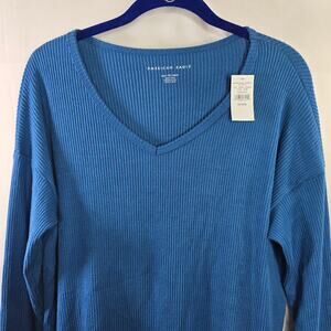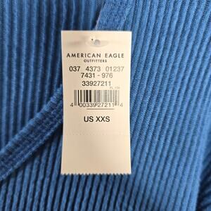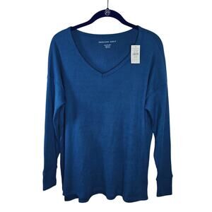 American Eagle Blue V-neck Oversized Long Sleeve Soft Top Size XXS NWT