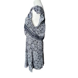 American Eagle Blue White Floral Dress Beach Cover w/Lace Tassel Waist Tie Sz M