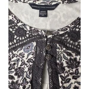 Women's American Eagle Blue White Floral Dress/Beach Cover w/Lace Trim and Tassel Waist Tie