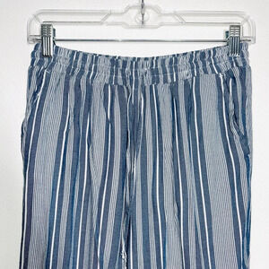 American Eagle blue & white striped casual cropped pants. In excellent condition! Super high rise. Elastic waistband with drawstring. Relaxed fit. Cropped. 24.5” inseam. Blue & white pinstripes. Size medium.