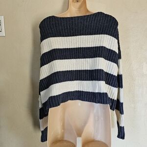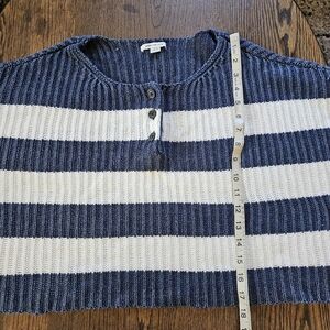 American Eagle Blue and White Striped Cropped Knit Henley Sweater Size Medium