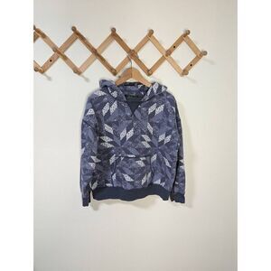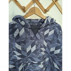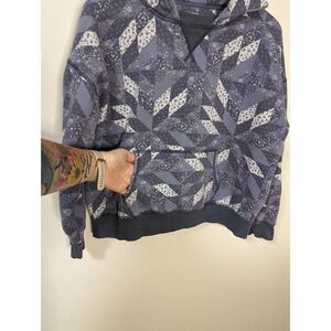 American Eagle Blue and White Quilted Patchwork Hoodie Sweatshirt - Size S