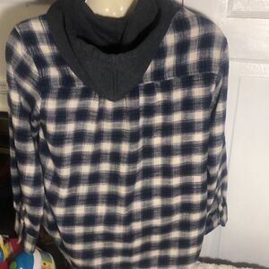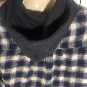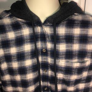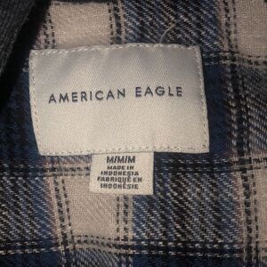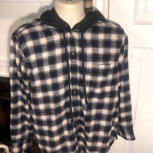 American Eagle Blue Plaid Hooded Flannel Button Up Shirt Jacket Men’s Medium M
