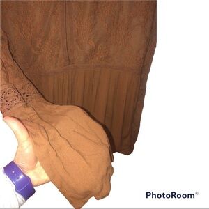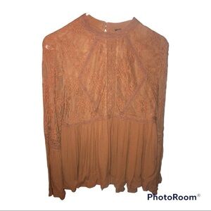 American Eagle Blush Pink Lace Peplum Bell Sleeve Long Sleeve Top Blouse