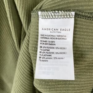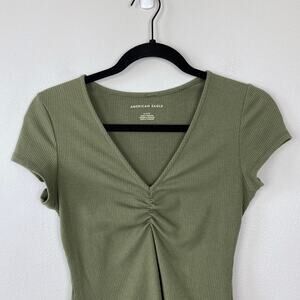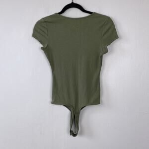 American Eagle Bodysuit Olive Green Ribbed Ruched V-neck Short Sleeve Medium