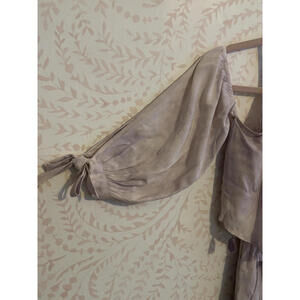 - Off-the-shoulder sleeves with tie details for a flirty look