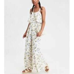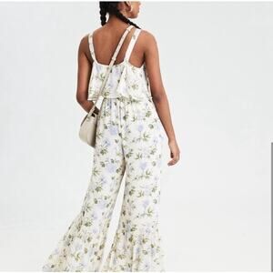 American Eagle Boho Floral Ruffle Hem Wide Leg Jumpsuit NWT Size S