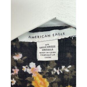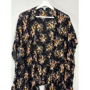 American Eagle Boho Floral Ruffle Kimono Cardigan One Size Black Pink