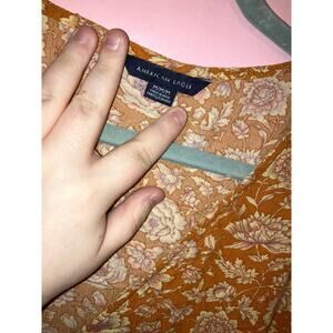American Eagle Boho Floral Tie Front Bell Sleeve Top Medium