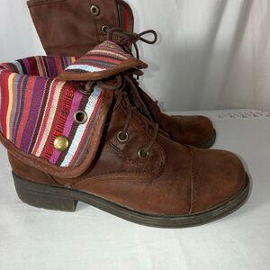 American Eagle Boho Fold-Over Combat Boots Women’s 8 Brown Faux Leather Aztec Wo