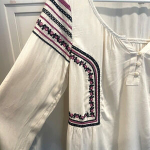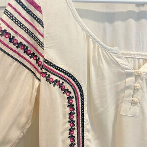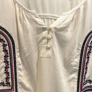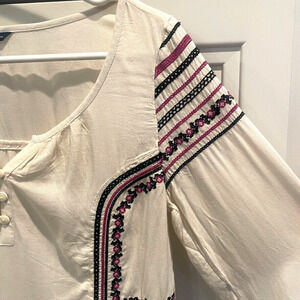 American Eagle Boho Size Small Embroidered Henley Gathered Sleeve Blouse Top