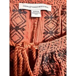 American Eagle Boho Women's Sleeveless Dress Rust Halter Hippie Beachy Aztec M
