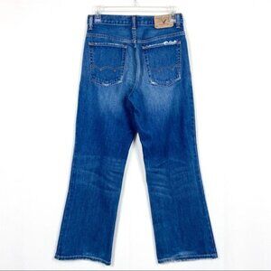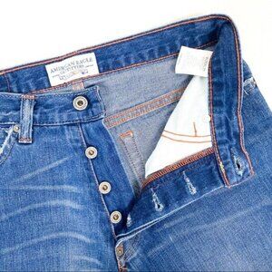 Bootcut denim jeans from American Eagle Outfitters AEO. Medium wash, five pocket, light distressing. Men’s size 26x28. Gently worn. No rips or tears. Smoke free pet free home.