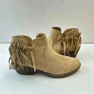 American Eagle Boots Brown Tan Suede Fringed Side Zip Womens Size 9.5. Some signs of wear still In good preowned condition. Please review all the photos.
