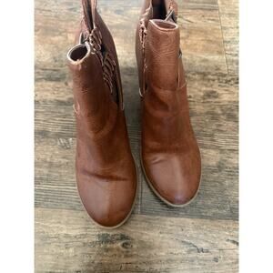 American Eagle Boots Womens 9 Ankle Booties Brown Leather Block Heels Casual