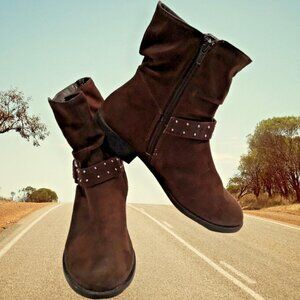 American Eagle Boots Womens Size 7 Ankle Brown Beaded Studs Faux Leather Boots