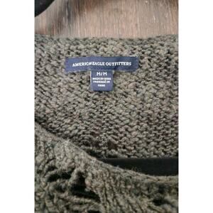 American Eagle Boxy Cropped Loose Open Knit Sweater Sz Medium Olive Green Preppy
