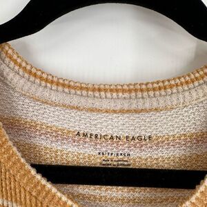 American Eagle Boxy Striped Lettuce Trim Fall Autumn Short Sleeve T-shirt XS