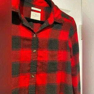 American Eagle Boyfriend Fit Amazingly Soft Res Gray Flannel Button Down Size S