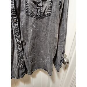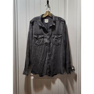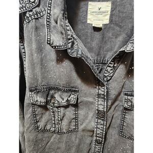 American Eagle Boyfriend Fit Dark Gray Splatter Button Front Shirt Women’s XS