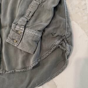 American Eagle Boyfriend Fit Long Sleeve Button Up Shirt Womens Small Green/Gray