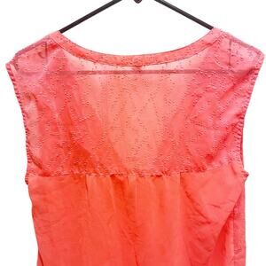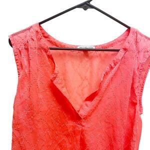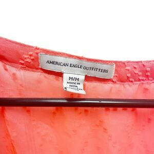 American Eagle Bright Neon Orange Sheer Split Nevk Blouse Medium