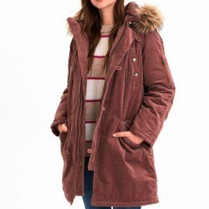 American Eagle Brown Corduroy Zip-Up Hooded Parka size small Ships Same Day!