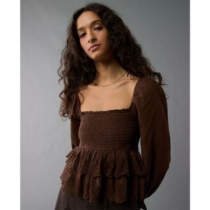 American Eagle Brown Embroidered Smocked Top Size Small. In great preowned condition. Worn once.