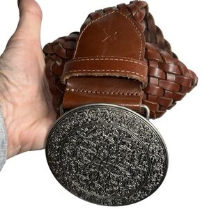 American Eagle Brown Leather Belt Braided Boho Y2K Western Concert M/L