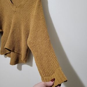American Eagle Long Sleeve V Neck Cropped Dolman Sleeve Ribbed Oversized Sweater