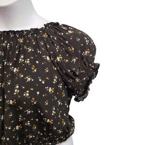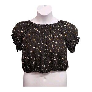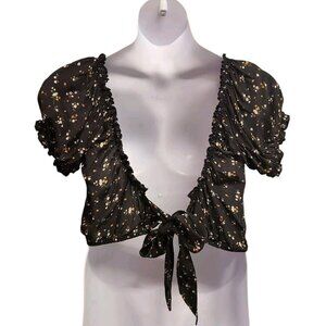 American Eagle Bubble Crop Top Womens Medium Floral Print Open Tie Back