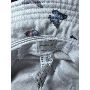 American Eagle bucket hat featuring a playful butterfly print all over a crisp white background. Lightweight and comfortable with a wide brim for casual, everyday wear. One size fits most, designed for a relaxed and versatile fit. In like new condition, perfect for adding a stylish touch to your outfit.