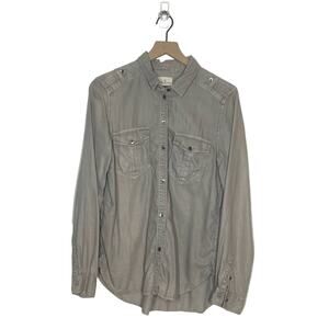 American Eagle Button Down Shirt Women's Size Medium Taupe Boyfriend Fit Washed