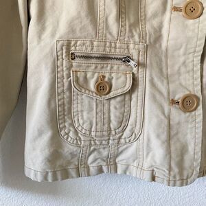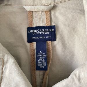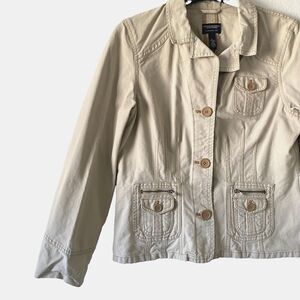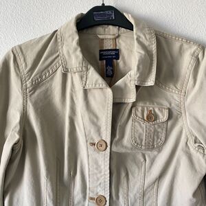 American Eagle Button Front Khaki Military Style Jacket Beige Sz L Women