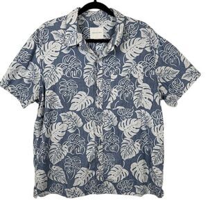 American Eagle Button Front Shirt Tropical Blue and White Palm Leaf Size Large