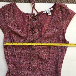 Floral lightweight dress with a small cutout on the lower back, button down front and lacing detail on the upper back. Super cute!!