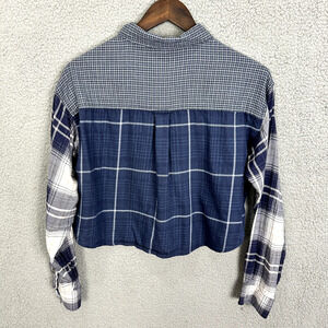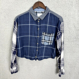 American Eagle Button Up Crop Top Womens Small Plaid Long Sleeve Boho Western