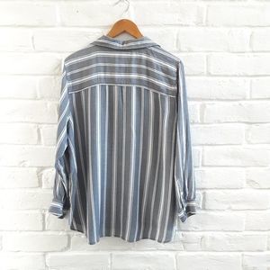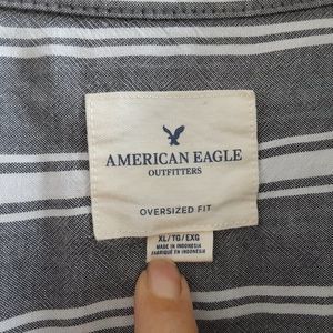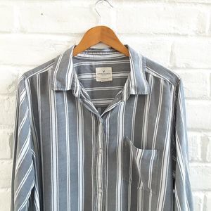American Eagle Button Up Men Shirt Size XL Gray White Striped Long Sleeve