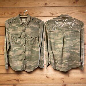 American Eagle Camo Stay Lovely Boyfriend Fit Button Down Shirt