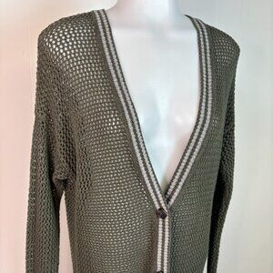 American Eagle Cardigan Medium Green Longline Varsity Open-Knit Sweater Cotton