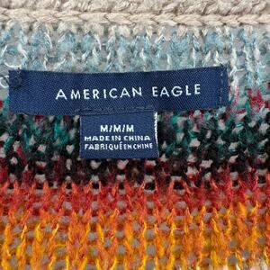 American Eagle Cardigan Striped Y2K Preppy Button Up Size Medium Rainbow Long