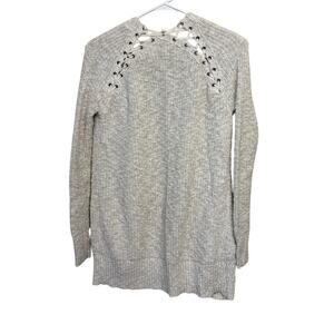 American Eagle Cardigan Sweater Eyelet Lace Up Back Detail Open Front Beige XS