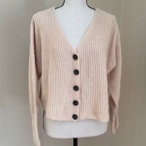 American Eagle Cardigan Sweater Ribbed Shaker Tan Button Oversized Slouchy XS