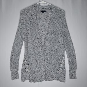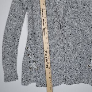 American Eagle Cardigan Sweater XS Gray Laced Hem Open Front Ribbed Knit Stretch