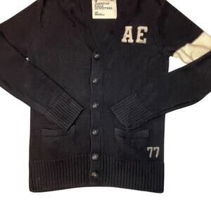 American Eagle Cardigan Sz S Men’s Navy Button Down Academia Preppy Wool Blend