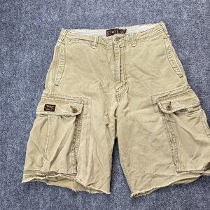 American Eagle Cargo Shorts Mens 28 Khaki longer length Raw Hem Distressed