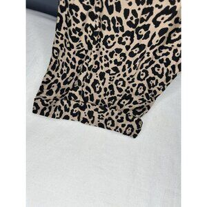 Add a touch of wild to your wardrobe with these Women's American Eagle Outfitters cheetah print high-waisted tapered pants in size Small. The real life color and pattern is best seen in the close up pictures of the tie belt and the pant cuff. The pants feature a tie and pull-on closure, with a flat front and a lightweight, breathable super soft knit fabric made of viscose. The pants are machine washable and have easy care features, making them perfect for travel, parties, or casual wear.