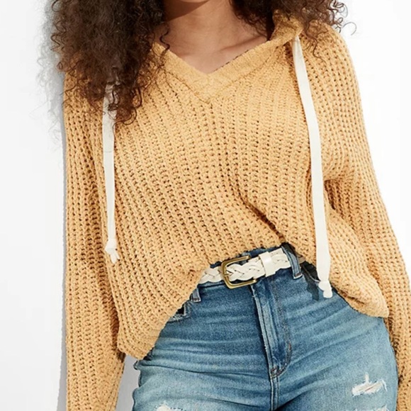 American Eagle Chenille Cropped Hooded Sweater Size M