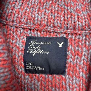 American Eagle Chunky Knit Cardigan Sweater Size L Pink Blue Shawl Neck good preowned condition.